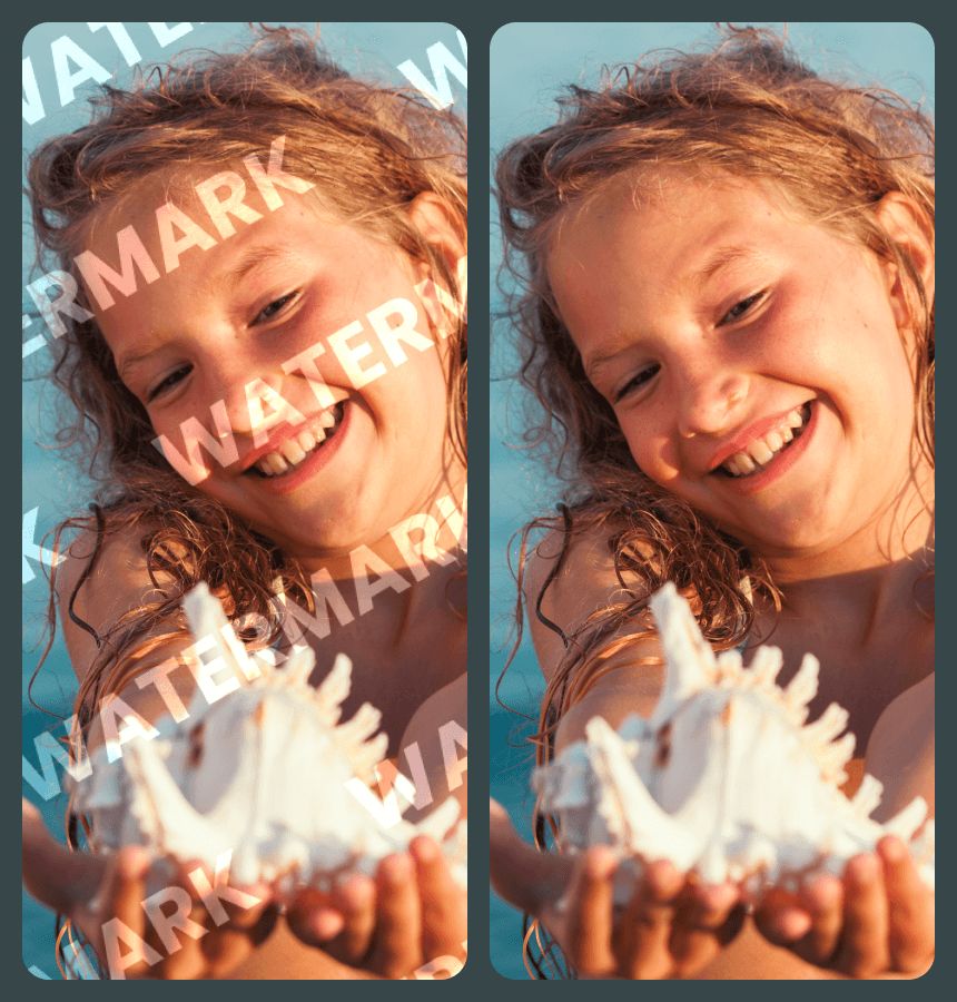 Watermark Restoring AI identifies and removes logos/text overlays, reconstructing whatever image details are hidden in the overlay using an AI watermark remover.